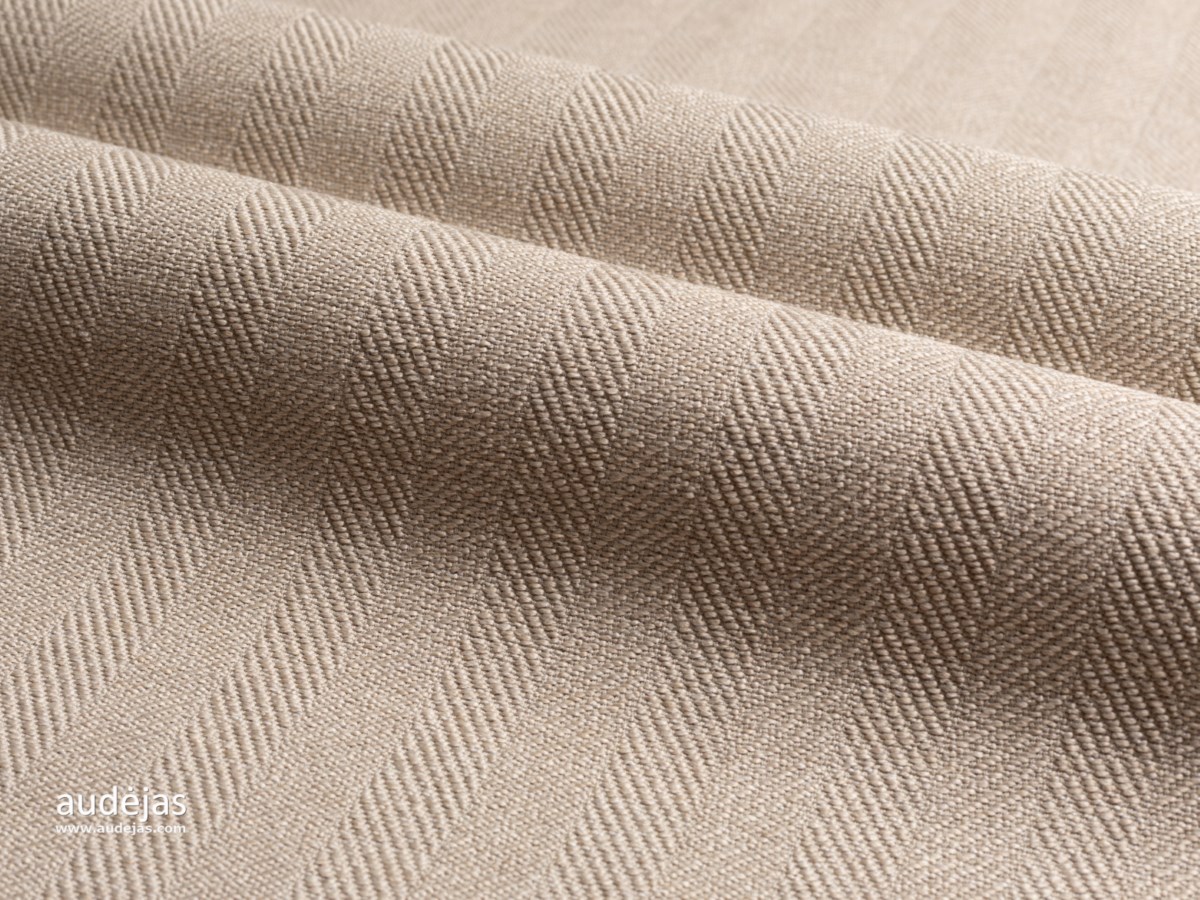 Blending natural and synthetic fibres, MATAS is a thick and durable fabric featuring herringbone and twill structures in calm neutral tones that bring timeless texture and quiet strength to upholstery.